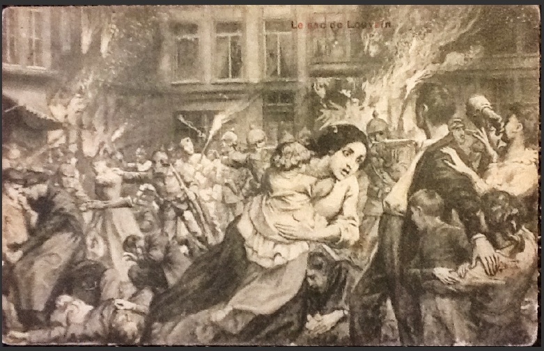 Daarnaast zijn er ook postkaarten die verschillende episodes van de oorlog illustreren (o.m. de slag der zilveren helmen bij Haelen, de vernietiging van Leuven, enz.). Vaak wordt op de kaarten de nadruk gelegd op de Teutoonse barbaarsheid. In de vele verhalen die mijn grootmoeder ons vertelde, had ze het dikwijls over de gruweldaden van de 'Ulanen': op lansen gespietste babytjes, twee meisjes uit een naburig dorp die, opgesloten in het varkenskot, verschillende keren verkracht werden, enz. Als je er nu Wikipedia op naleest, was hun panische angst niet onterecht (zie verder). De geallieerde propaganda heeft dat ook aangegrepen om het 'brave little Belgium' nog meer in de verf te zetten: het arme, kleine België dat heldhaftig weerstand bood tegen de Germaanse barbaren.